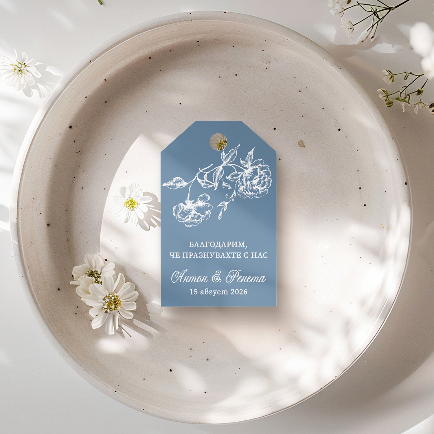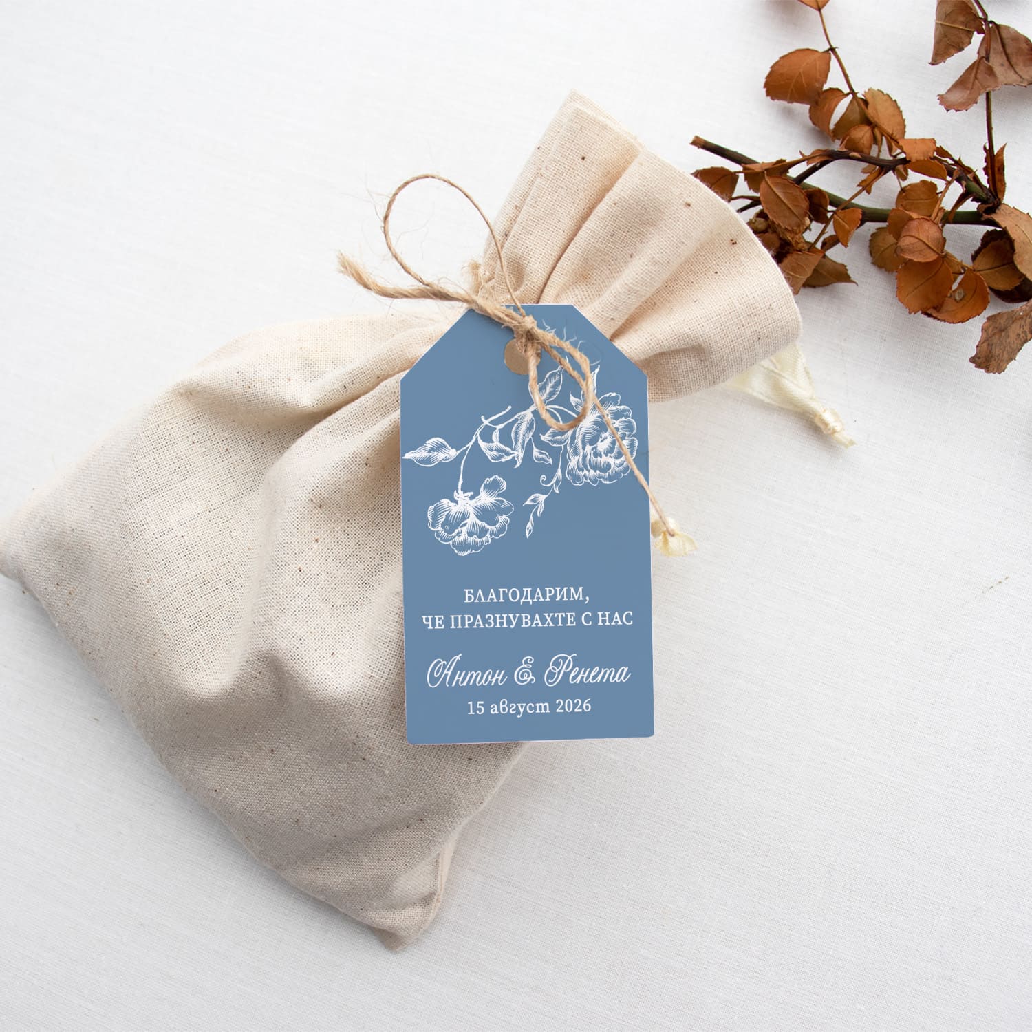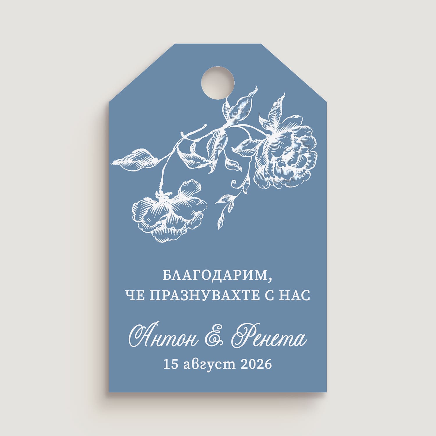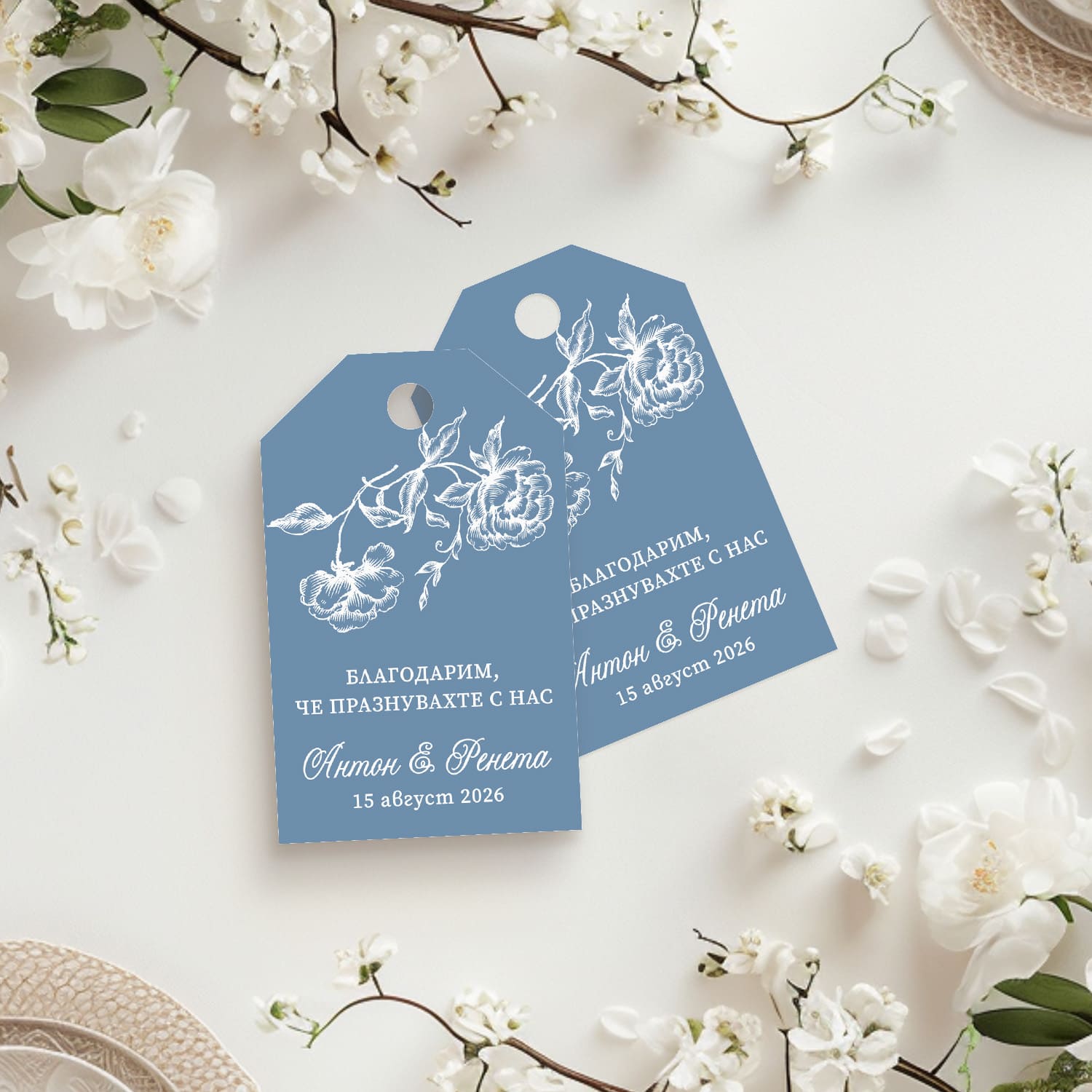 Добавете перфектния завършек към всичките си сватбени подаръци с нашата колекция от етикети за подаръци с възможност за персонализиране. Отпечатани върху внимателно подбрана хартия, тези уникални етикети за подаръци пристигат с предварително пробита дупка, готови за вашата панделка, канап или декоративен шнур. Ако имате някакви въпроси или специални заявки за вашите етикети за подаръци, моля, изпратете ни имейл.