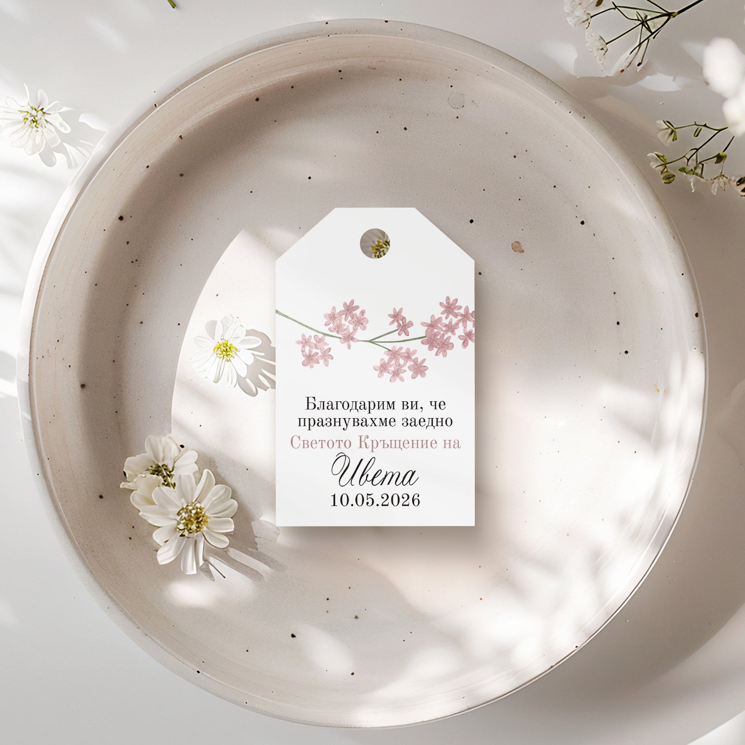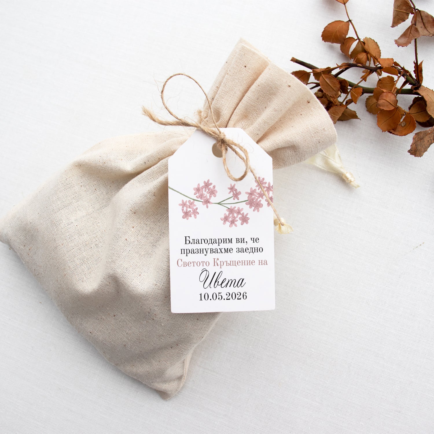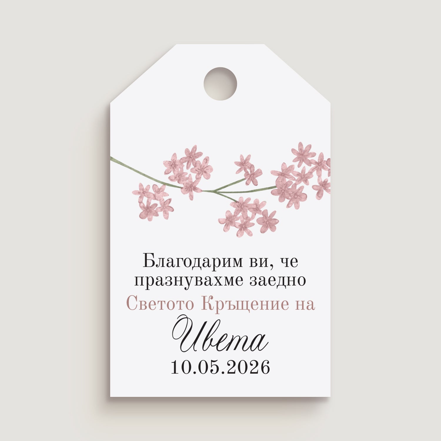 Етикет за кръщене с розова клонка