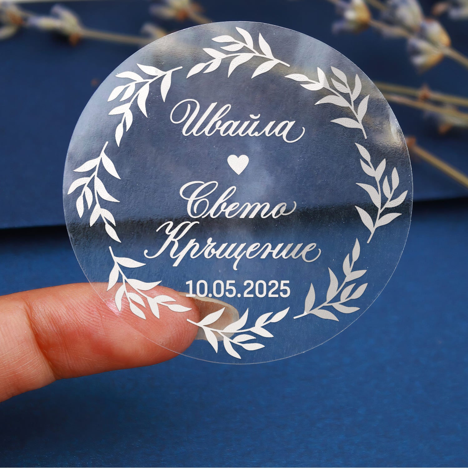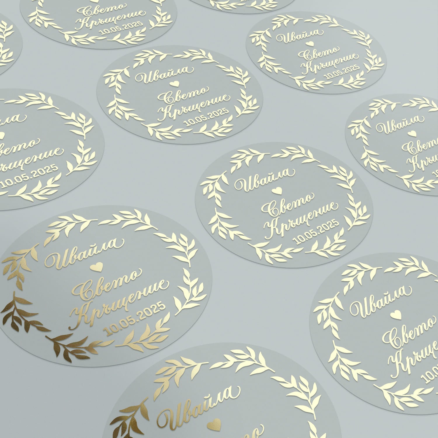 Добавете елегантност към своите проекти с нашата колекция от персонализирани стикери, направени по поръчка с внимание към детайла. Те са идеални за кръщене, събития, годишнини, сватби, брандиране на бизнес или лични поводи, придавайки индивидуалност на всяка ситуация.