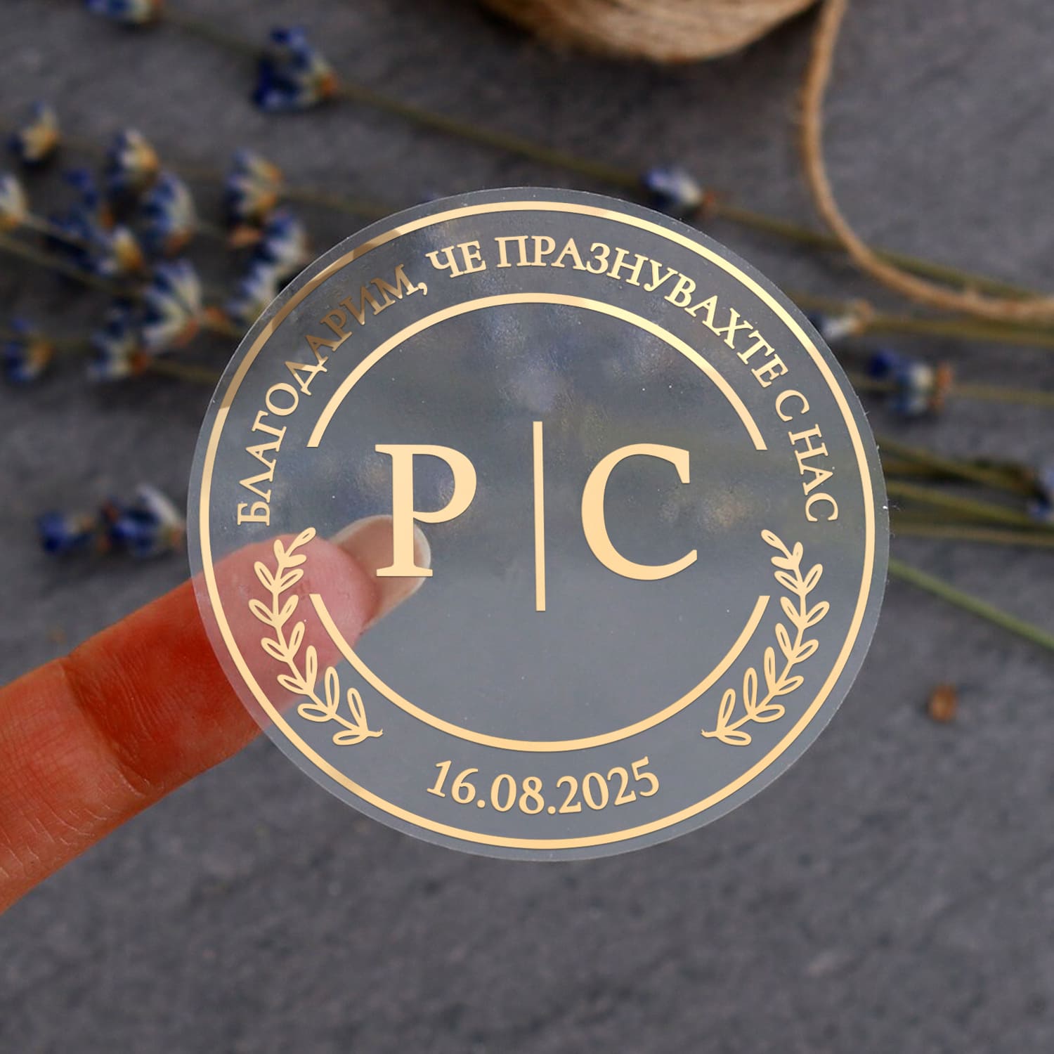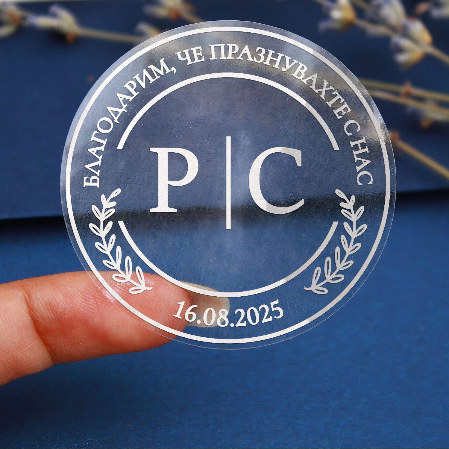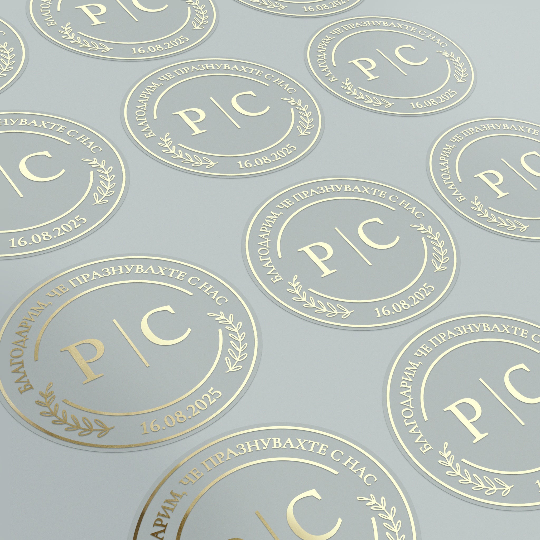 Добавете стил към своите проекти с нашата колекция от персонализирани стикери, направени по поръчка с внимание към детайла. Те са идеални за сватби, събития, годишнини, брандиране на бизнес или лични поводи, придавайки индивидуалност на всяка ситуация.